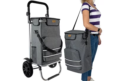 • Geantă de cumpărături multifuncțională cu roți + curea de umăr
