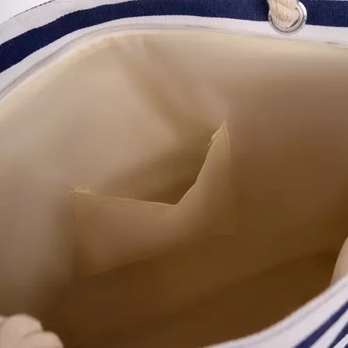 O geantă stilată și practică în design maritim este ideală pentru plajă, picnic sau oraș. Datorită materialului de calitate, rezistent și ușor de curățat, îți va proteja lucrurile de umiditate și deteriorare. Cu un interior spațios și un buzunar suplimentar pentru obiecte de valoare, ai toate lucrurile necesare la îndemână.