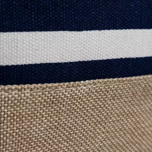 • Stil maritim – albastru închis cu dungi albe și fund din iută