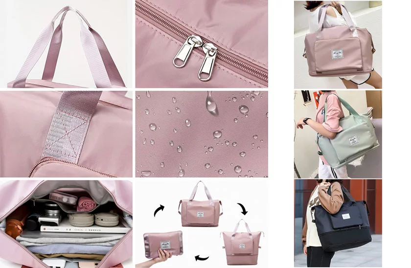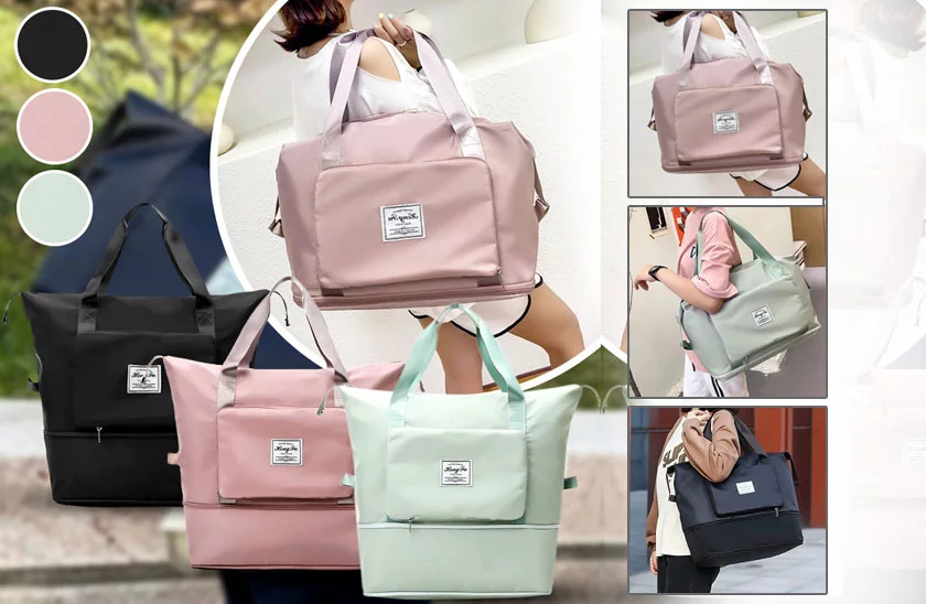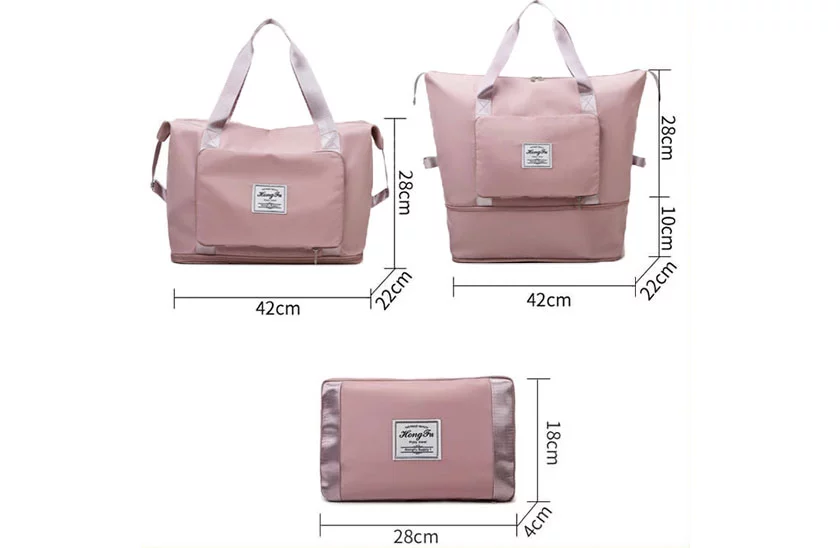 Această geantă de voiaj pliabilă, dispune de un spațiu mare de depozitare și vă oferă tot ce aveți nevoie atunci când călătoriți. Vă va permite să organizați frumos lucrurile individuale, astfel încât să le puteți găsi cu ușurință atunci când aveți nevoie de ele. Dispune de un spațiu pentru separarea obiectelor umede și uscate și are un design pliabil. Această geantă este potrivită ca bagaj personal pentru toate companiile aeriene. Datorită funcției sale de extindere, această geantă poate fi folosită pentru a păstra un număr mare de obiecte sau ca o geantă mică compactă.
