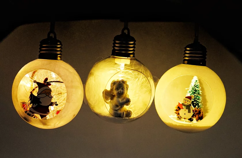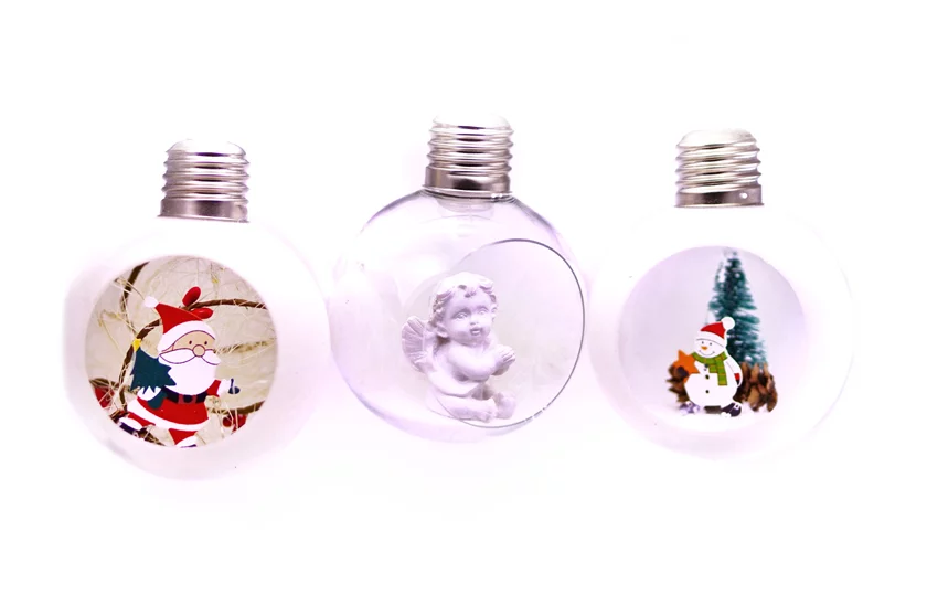 Globurile decorative de Crăciun sunt niște decorațiuni populare care ajută la creare unor aranjamente originale. Fiecare glob are o sursă de lumină LED care completează detaliile figurinei din interior. Setul este compus dintr-un glob transparent, cu un îngeraș în interior și două globuri albe, cu finisaj plușat și modele de Crăciun în interior.