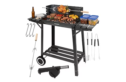 • Tip – grătar de grădină pe cărbune cu grătar superior și rotisor