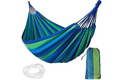 Această plasă suspendată este ideală pentru relaxare în grădină, pe terasă sau în timpul călătoriilor. Este fabricată dintr-o combinație de bumbac și poliester, ceea ce asigură o atingere plăcută, durabilitate și o ventilație adecvată pentru confort în zilele călduroase. Plasa este ușor de transportat – se împachetează rapid și poate fi luată cu tine în excursii, camping sau la plajă. Cordonul puternic și elementele de fixare rezistente permit utilizarea în siguranță cu o capacitate de până la 150 kg, iar montajul este simplu și posibil aproape oriunde – trebuie doar să agăți ambele capete de o suprafață stabilă, cum ar fi copacii, stâlpii sau cârligele.