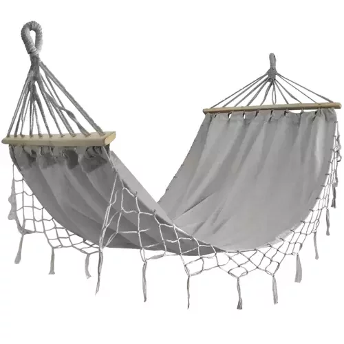 Hamaca pentru grădină, terasă sau balcon oferă confort maxim și relaxare. Datorită materialului moale și rezistent, te poți bronza, citi sau pur și simplu te poți relaxa. Bârnele din lemn întind hamaca într-o poziție confortabilă, ca un pat, iar sforile împletite asigură o suspendare sigură. Hamaca este potrivită pentru instalare permanentă, dar și pentru transport pe plajă sau în călătorii.