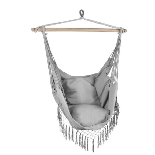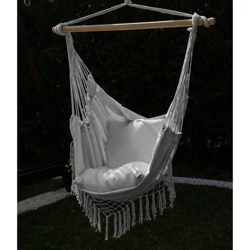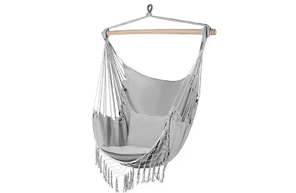 Scaun suspendat confortabil pentru relaxare în grădină, terasă sau balcon. Combinația de bumbac natural și poliester rezistent asigură o senzație plăcută la ședere și o durabilitate îndelungată. Construcția stabilă cu un suport din lemn oferă suportul corect al corpului în timpul cititului, odihnei sau somnului scurt. Include două perne moi pentru un confort și mai mare.