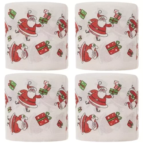 Hârtia igienică cu două straturi combină confortul utilizării cu un design practic și economic. Fiecare foaie este imprimată cu un motiv de Crăciun, care va adăuga o atmosferă festivă băii dumneavoastră și va încânta oaspeții și membrii familiei. Setul de patru role asigură suficientă hârtie pe toată durata sezonului de sărbători și este potrivit și pentru cafenele, restaurante sau magazine care doresc să aducă oaspeților o atmosferă veselă de Crăciun.