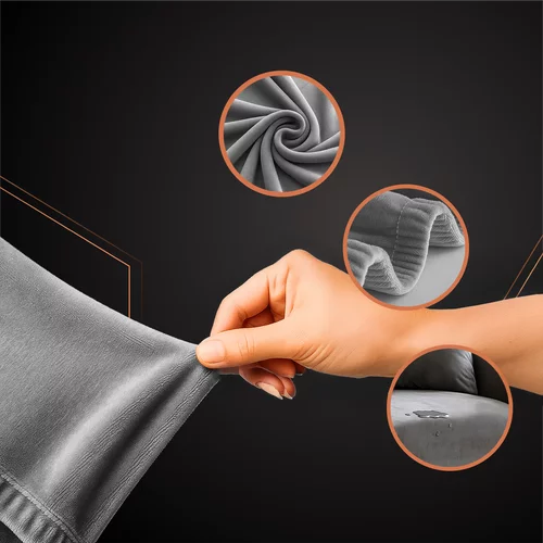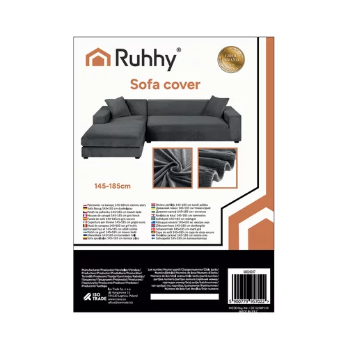 Husa de catifea moale și elastică protejează și reîmprospătează canapeaua. Se adaptează formei mobilierului, rămâne stabilă pe loc și oferă interiorului un aspect confortabil și elegant. Culoarea gri închis se potrivește cu diverse decorațiuni, iar dimensiunea 145–185 cm se potrivește majorității canapelelor colțare standard.