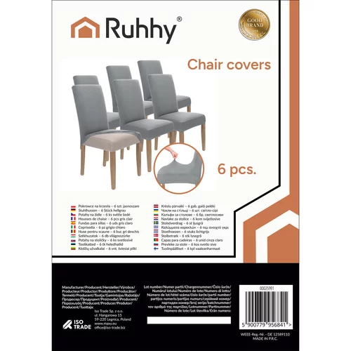 Husele RUHHY combină eleganța, confortul și protecția scaunelor. Fabricate din poliester moale și spandex elastic, se potrivesc perfect pe fiecare scaun și îl protejează de murdărie și deteriorare. Culoarea gri se potrivește cu diferite stiluri de interior, iar dimensiunea universală 65 × 40 × 35 cm se potrivește majorității scaunelor standard.