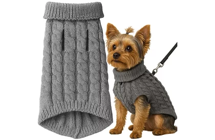 Perfect se potrivește și materialul elastic se adaptează siluetei câinelui sau pisicii, fără a limita mișcarea. Tricotul fin asigură confort și moliciune, materialul este ușor și elastic, astfel încât animalul de companie poartă puloverul cu bucurie. Puloverul tricotat protejează împotriva frigului, ideal pentru plimbările de toamnă și iarnă.
