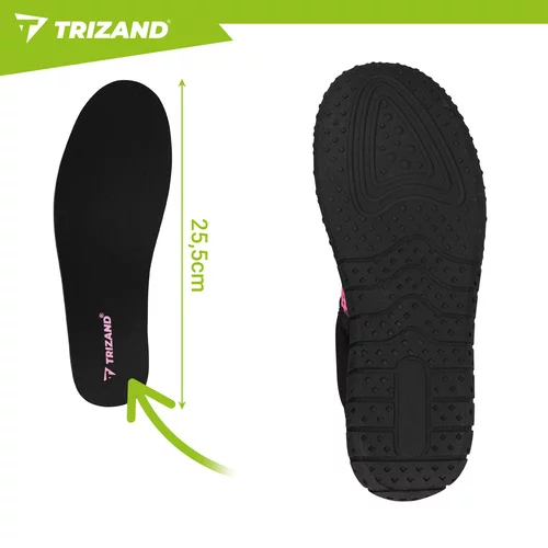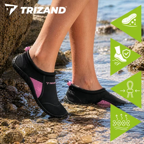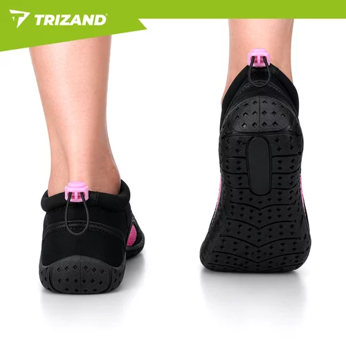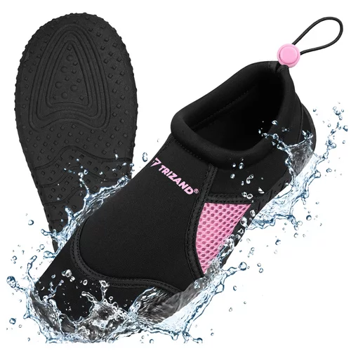 Mergeți la apă pregătiți și confortabil. Încălțăminte de apă protejează picioarele de pietre ascuțite, scoici și suprafețe alunecoase și oferă confort în timpul mersului pe plajă, lângă piscină sau în timpul activităților acvatice. Designul elegant în culori negru-roz completează construcția ușoară și materialul care se usucă rapid pentru confort maxim pe parcursul întregii zile.