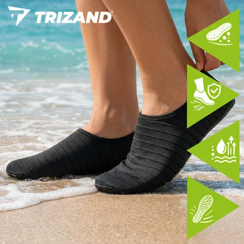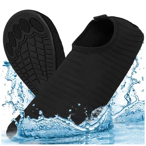 Distracțiile acvatice vor fi mai confortabile și mai sigure cu pantofii de apă, care protejează tălpile de pietricele ascuțite, scoici și suprafețe denivelate. Datorită designului ușor și flexibil, se adaptează bine la picior și nu limitează mișcarea. Materialul care se usucă rapid asigură confort după înot și talpa antiderapantă ajută la menținerea stabilității pe suprafețe umede. O alegere excelentă pentru mare, lac, piscină și sporturi acvatice.