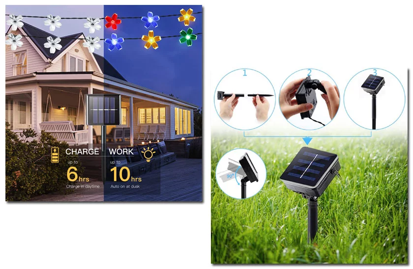 Această instalație luminoasă trebuie doar să fie amplasată în mod corespunzător pentru ca imaginația să nu aibă limite. Puteți decora cu ea orice copac din grădină, veranda, pergola, o poartă sau un gard, fără să vă faceți griji cu privire la alimentarea cu energie electrică. Aceasta pentru că produsul are un panou solar care, în timpul zilei, încarcă bateriile reîncărcabile din cutia de control, iar senzorul de reglare a intensității luminoase trece automat la modul de iluminat pe timp de noapte.