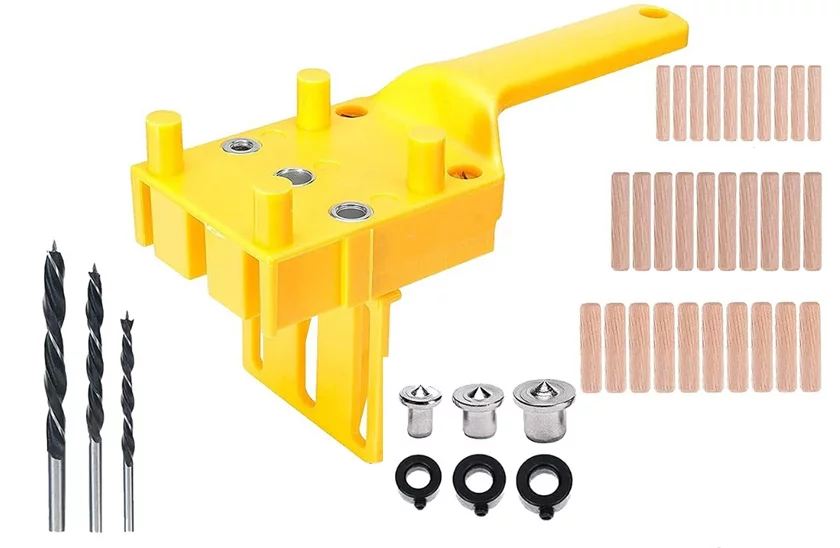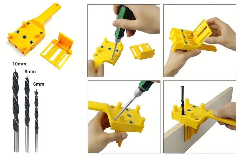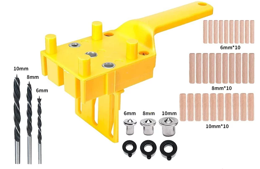 Instrument de perforare portabil. Cu acest instrument, fiecare bricoler va avea mult mai puțin de lucru. Este utilizat în principal pentru crearea simplă a îmbinărilor cu dibluri din lemn. Utilizare simplă şi rapidă. Îl veți utiliza în principal pentru a perfora orificii pentru diblurile de îmbinare a două plăci. Acest instrument de perforare poate fi utilizat și dacă doriți să faceți mai multe orificii la aceeași distanță de marginea materialului. Prin intermediul orificiului din mijloc, puteți face rapid un orificiu în mijlocul marginii plăcii, cu ajutorul ghidajelor proeminente de pe instrumentul de perforare. Instrumentul este prevăzut cu mâner, pentru o mai bună manipulare.