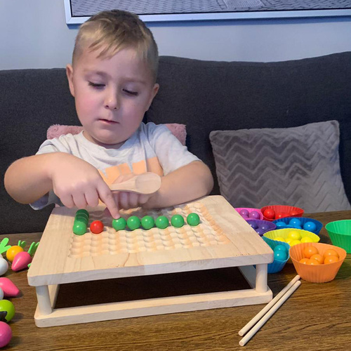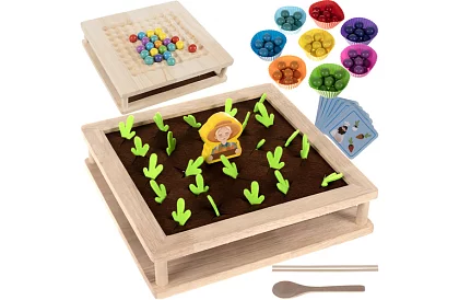 Jocul din lemn 2 în 1 combină împușcătura distractivă cu bile și jocul de memorie fermă. Datorită combinației de sarcini manuale și logice, copilul se va bucura de ore de distracție, dezvoltând coordonarea ochi-mână, concentrarea și imaginația și învățând gândirea logică. Elementele colorate atrag atenția și susțin creativitatea în timpul jocului cu părinții sau prietenii.
