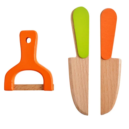 • include cuțite, tocător și o imitație de răzătoare