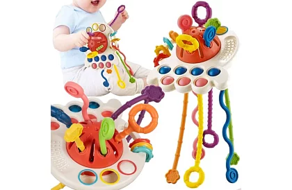 Dezvoltă simțurile copilului, susține motricitatea fină, coordonarea mână-ochi și învață să recunoască diferite texturi, culori și sunete. Designul colorat, moale și sigur permite copilului să descopere lumea într-un mod distractiv și sigur. Ideal pentru bebeluși și copii mici care învață prin atingere, auz și vedere.