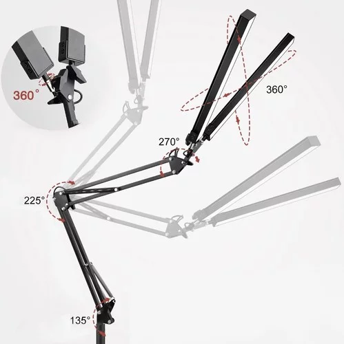 • Braț ajustabil: mișcare în 3 planuri 360 / 225 / 270 / 135°