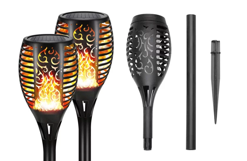 Lampă decorativă solară cu design modern. Se încarcă pe timpul zilei și luminează noaptea. Creează o atmosferă unică în grădină sau pe terasă, imitând o flacără aprinsă.