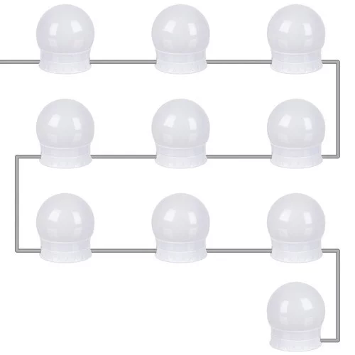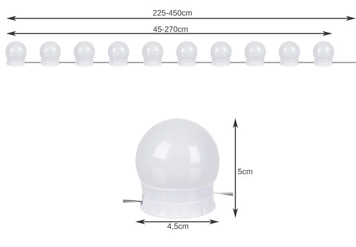 Setul practic de lampi LED USB oferă iluminare perfectă pentru masa de toaletă sau oglindă. Datorită celor trei nuanțe de lumină – alb rece, lumină de zi și alb cald – și celor 10 niveluri de intensitate, puteți seta cu ușurință lumina ideală pentru machiaj, coafură sau decorare. Lămpile LED economice sunt rezistente, indestructibile și flexibile – lungimea cablului poate fi ajustată până la 25 cm între lămpi, ceea ce permite crearea de compoziții și aranjamente impresionante.