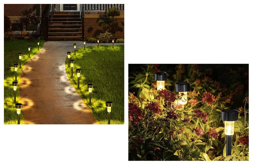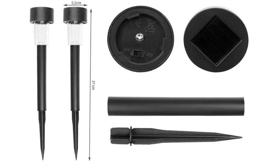 Fiecare lampă este dotată cu un țăruș pentru fixare ușoară în sol sau în ghivece. Senzorul de amurg aprinde automat luminile la lăsarea întunericului. Instalarea durează doar câteva secunde și nu necesită unelte sau cabluri.