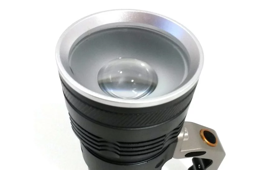 Lanternă LED, cu o rază de până la 600 de metri şi cu putere maximă de 800 lumeni. Aveţi la dispoziţie mai multe reglaje ale iluminatului: lumină intensă, lumină moderată, lumină intermitentă şi emitere de semnal SOS după ce se apasă lung butonul bateriei. În plus, se poate regla şi diametrul razei de lumină.