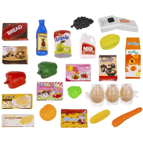 • Produse și accesorii colorate care imită un supermarket adevărat