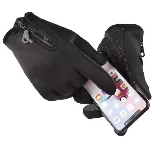Mănușile practice cu cinci degete permit utilizarea confortabilă a ecranelor tactile chiar și în vreme rece. Sunt ideale pentru călătorii, navetă, sporturi de iarnă sau ciclism. Datorită construcției rezistente la apă și vânt, protejează mâinile de frig și umiditate, în timp ce stratul antiderapant asigură o prindere sigură a telefonului. Umplutura din fleece cu două straturi menține mâinile calde și absoarbe umiditatea, astfel încât să te simți confortabil și în același timp poți controla smartphone-ul sau tableta fără a-ți scoate mănușile.