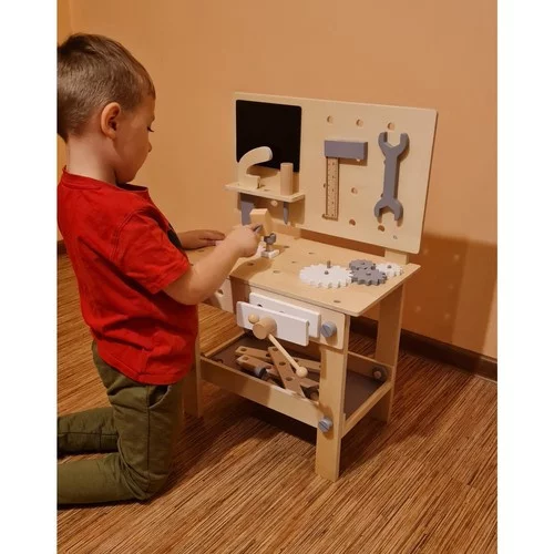 Susține creativitatea, abilitățile manuale și coordonarea la copii, oferind ore de distracție și învățare prin joc. Fiecare instrument este conceput pentru mâini mici, fabricat din materiale sigure și netoxice și atelierul este rezistent la jocuri intense. O investiție perfectă în dezvoltarea copilului, care combină educația cu joaca.