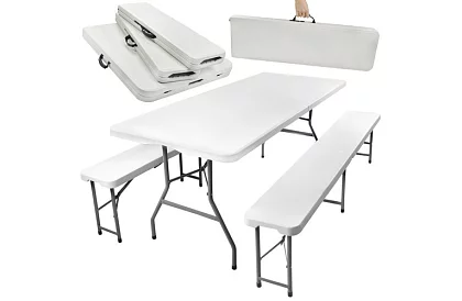 Setul catering creează în câteva minute un mediu confortabil pentru petrecerile în grădină, grătare și evenimente mari. Construcția din oțel solid, plăcuța din plastic rezistent și plierea rapidă asigură confort maxim, stabilitate și transport ușor. Soluția ideală pentru utilizare în aer liber și pentru un mediu de acasă, unde este nevoie de mobilă fiabilă și compactă.
