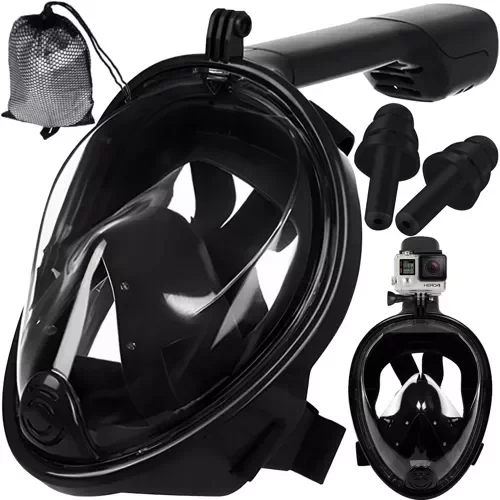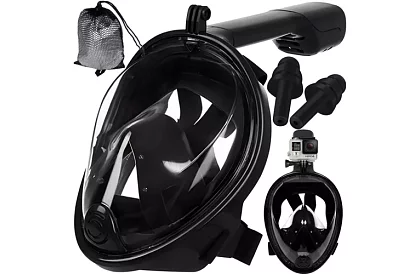 Masca de scufundare cu fața întreagă inovatoare permite respirația naturală pe nas și pe gură, ceea ce face ca scufundările și snorkelingul să fie mai plăcute și confortabile. Masca va fi apreciată de orice pasionat de sporturi acvatice, deoarece se potrivește perfect pe față, oferă confort și siguranță și setul include o geantă practică pentru transport ușor.