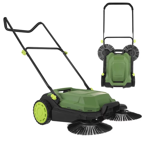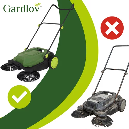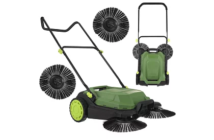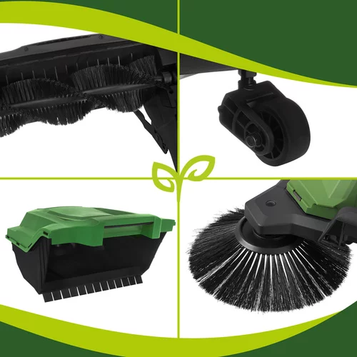 Practic mătură manuală permite curățarea rapidă și confortabilă a trotuarelor, aleilor, teraselor și a pavelelor fără efort cu o mătură clasică. Datorită sistemului de măturare cu trei perii adună eficient praful, frunzele și mizeriile mici și le depozitează direct în recipientul mare de colectare cu un volum de 24 de litri. Lățimea drumului de măturare de 680 mm accelerează semnificativ munca și permite curățarea unei suprafețe mari într-un timp scurt. Chassis-ul cu trei roți și mânerul reglabil asigură o manevrare confortabilă și ușoară în timpul curățeniei în jurul casei, în curte sau în grădină.