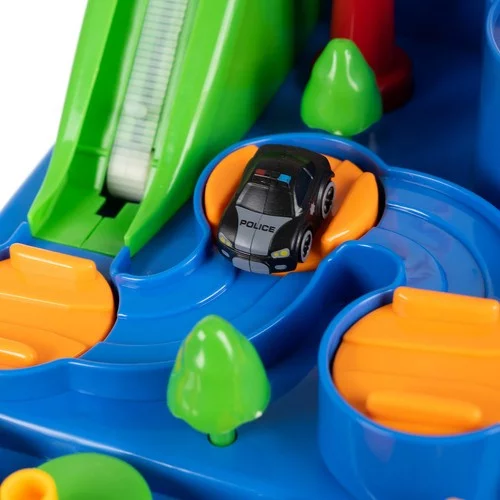 O jucărie excitantă, care va oferi ore de distracție și aventură. Copilul va învăța abilități manuale, gândire logică și capacitatea de a rezolva obstacole în timp ce parcurge pista. Elementele mobile, cum ar fi roțile dințate și podul mobil, adaugă tensiune și distracție jocului.
