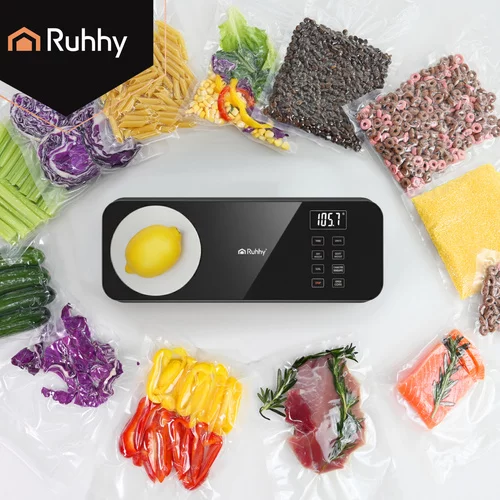 Conectarea mașinii de vidat și a cântarului digital aduce un control maxim asupra stocării alimentelor și a dimensiunii porțiilor. Pompa dublă de 80 kPa asigură o evacuare rapidă a aerului și prelungește prospețimea de mai multe ori. Cântărirea precisă cu o acuratețe de 0,1 g ajută la reducerea risipei și facilitează pregătirea meselor. Funcții practice precum cutterul glisant, ecran LCD, mai multe moduri de operare și protecția împotriva supraîncălzirii asigură utilizarea confortabilă, sigură și eficientă în orice bucătărie modernă.