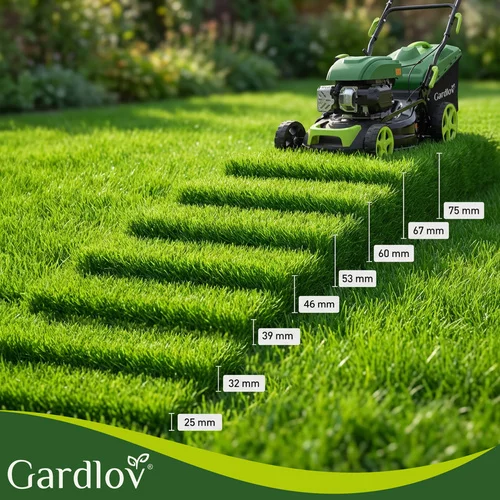 • Înălțimea de tăiere: 8 niveluri 25–75 mm, setare de la iarbă joasă la mai înaltă