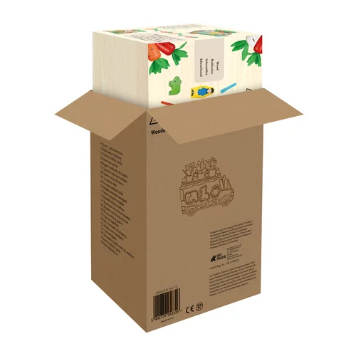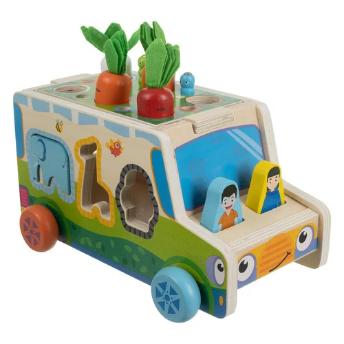 Montessori șofer de forme combină joaca și învățarea – copilul își exersează gândirea logică, motricitatea fină și învață culorile și formele. Datorită celor 6 morcovi colorați, figurine de animale, elemente glisante și spațiu de depozitare în interiorul mașinuței, se dezvoltă imaginatia, precizia și independența. Lemnul natural cu suprafață netedă garantează o joacă sigură și durabilă.