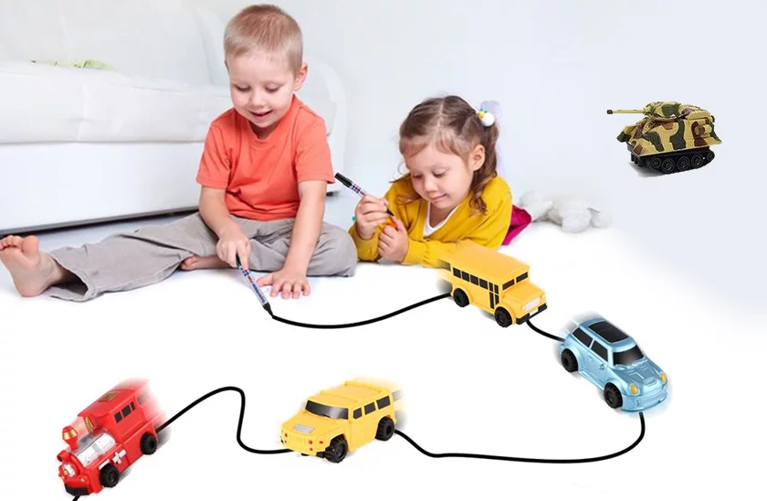 Pentru copii Alte jucării Maşinuţă cu inducţie şi cu carioca magică – desenează-ţi drumul aşa cum doreşti