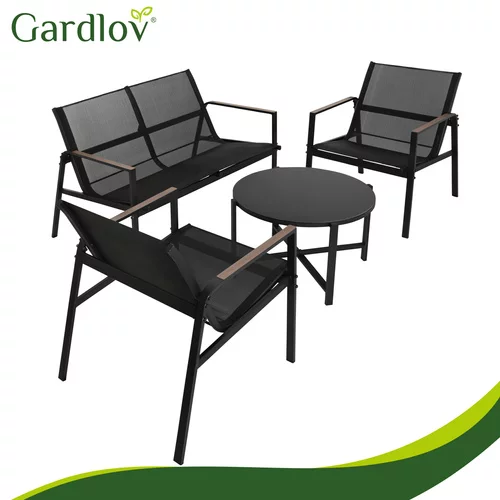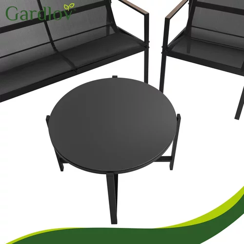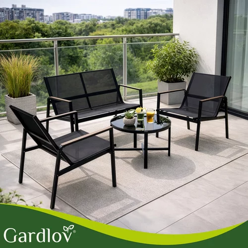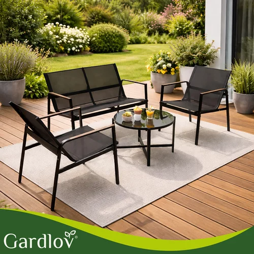 Setul de mobilier de grădină creează un loc confortabil pentru relaxare pe balcon, terasă sau grădină. Combinația de structură din oțel solid, materiale textile respirabile Teslin și masă elegantă oferă un loc de șezut confortabil și o durabilitate îndelungată în utilizarea în aer liber. Datorită setului de patru piese, veți obține o zonă completă de relaxare pentru a petrece timp cu familia sau prietenii. Materialele sunt rezistente la intemperii și, în același timp, foarte ușor de întreținut, astfel încât mobilierul să rămână curat și pregătit pentru utilizare pentru o perioadă lungă de timp.