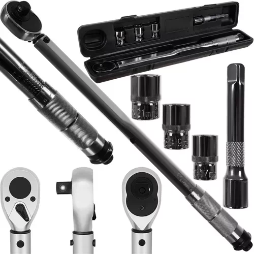 Cheia de cuplu multifuncțional cu ratchet este un instrument perfect pentru strângerea și slăbirea precisă a îmbinărilor cu șuruburi. Cuplul ajustabil, construcția durabilă din oțel și extensia permit o muncă sigură și confortabilă cu șuruburi, piulițe, cârlige și îmbinări de motociclete. Carcasa practică protejează cheia în timpul depozitării și transportului.