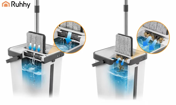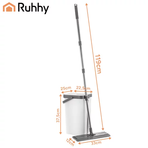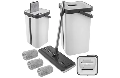 Mop plat modern cu un găleată cu două compartimente oferă curățenie igienică și rapidă fără efort inutil. Separarea apei curate și murdare asigură podele perfect curate fără dâre, în timp ce stoarcerea fără utilizarea mâinilor protejează mâinile și permite reglarea precisă a umidității mopului. Soluția ideală pentru curățenia zilnică a apartamentelor și caselor, unde contează eficiența, confortul și curățenia.