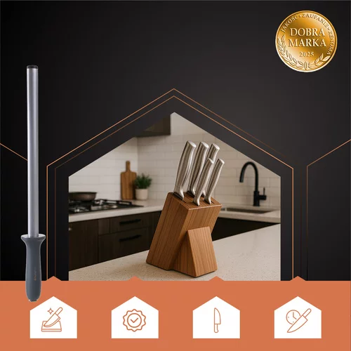 Asigură că cuțitele sunt ascuțite ca noi direct din fabrică datorită suprafaței de diamant, care permite ascuțirea rapidă, uniformă și eficientă fără a deteriora lama. Mânerul ergonomic și bara de oțel solidă oferă o muncă confortabilă și sigură, ideală pentru bucătării profesionale și de acasă.