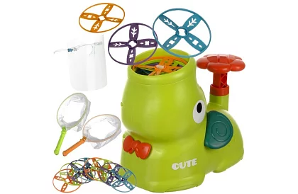 Lansatorul aduce ore de distracție și mișcare în aer liber pentru copii. Datorită designului sigur cu vizor de protecție, copiii se pot juca fără riscuri, în timp ce materialele durabile asigură utilizarea pe termen lung chiar și în condiții meteorologice nefavorabile. Controlul ușor fără alimentare permite jocul imediat – este suficient să apăsați pompa cu mâna sau cu piciorul. Dinamica discurilor rotative care cad face jocul captivant și, în același timp, sprijină coordonarea motorie, echilibrul și învățarea principiilor fizice. Setul colorat și complet este un cadou perfect, care va atrage fiecare copil și va inspira la joc activ în aer liber.