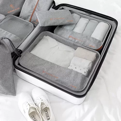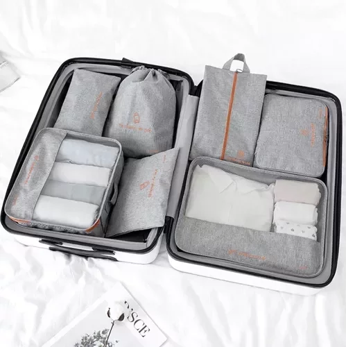 Practică set de organizatoare de călătorie permite menținerea ordinii în valiză, geantă sau cameră de hotel. Șapte organizatoare de dimensiuni diferite vă vor facilita împachetarea hainelor, lenjeriei, încălțămintei, cosmeticelor și electronicelor. Datorită organizatoarelor, puteți avea totul clar separat și protejat, ceea ce asigură o călătorie confortabilă și eficientă, fără haos inutil.