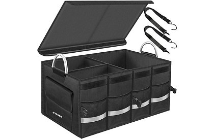 Organizator practic pentru portbagajul mașinii ajută la menținerea ordinii, a clarității și a depozitării sigure a tuturor lucrurilor transportate. Datorită construcției solide și a țesăturii de oxford de calitate, previne mișcarea accidentală a încărcăturii în timpul călătoriei și economisește timp în căutarea lucrurilor mici. Aranjamentul interior variabil și posibilitatea de pliere îl fac un accesoriu ideal pentru utilizarea zilnică și pentru călătorii mai lungi.