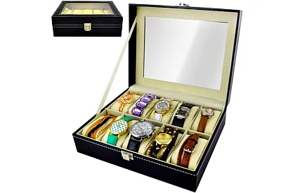 Soluție elegantă pentru stocare sigură, organizare clară și prezentare stilată a ceasurilor și bijuteriilor. Combinația de umplutură protectoare, împărțire practică și aspect reprezentativ asigură utilizarea confortabilă zilnică și protecția pe termen lung a accesoriilor. Potrivit pentru gospodărie și ca cadou de bun gust.