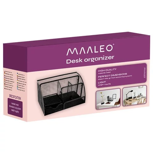Organizatorul de birou practic vă permite să aveți toate articolele de birou la îndemână și să mențineți suprafața de lucru ordonată. Datorită compartimentului mare și celor cinci compartimente mai mici, sertarului și rafturilor, puteți depozita cu ușurință pixuri, creioane, markere, gumă, agrafe de birou, lipici sau foarfece. Organizatorul este rezistent și robust, astfel încât să reziste utilizării pe termen lung acasă sau la birou.