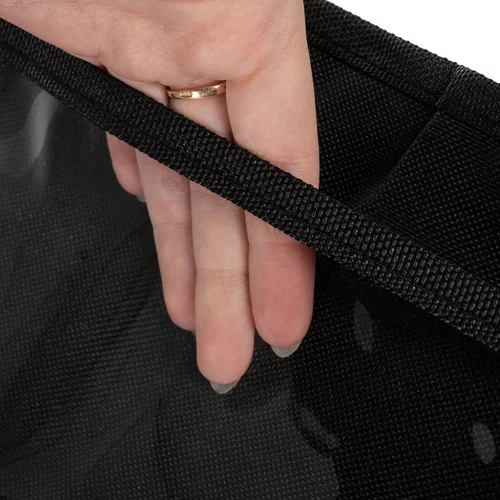 • Buzunar transparent pentru tabletă sau telefon permite controlul ecranului tactil în timpul condusului