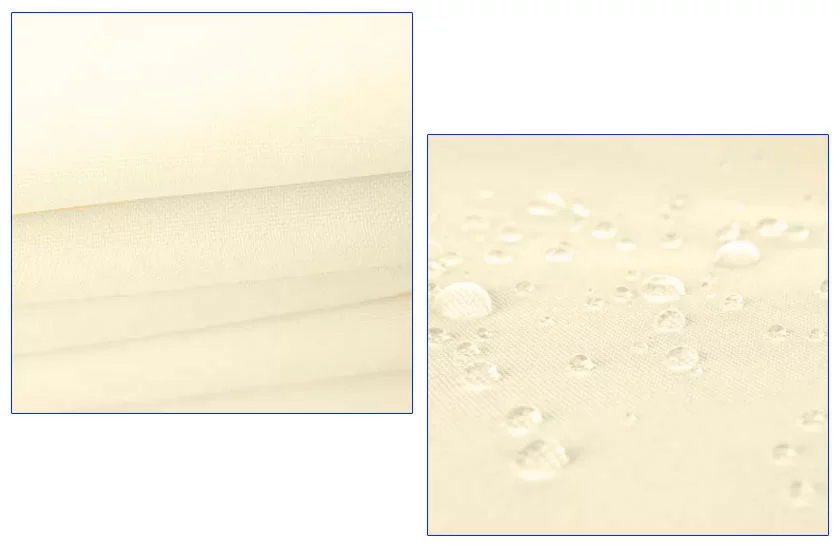 Țesătura densă blochează eficient razele solare și reduce temperatura de sub pânză, permițând în același timp circulația aerului. Astfel, creează un climat plăcut chiar și în zilele toride. Materialul este rezistent la apă, se usucă rapid și este imun la umiditate și mucegai – ploaia nu te va mai lua prin surprindere.