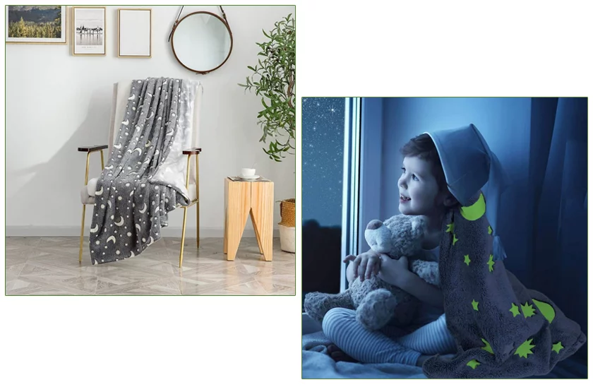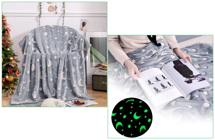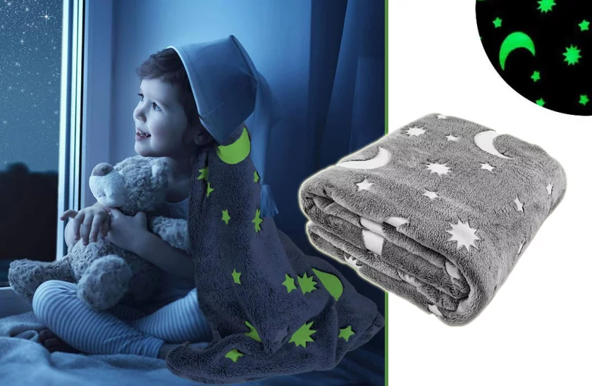 Această pătură luminoasă foarte plăcută, confecționată din microfibre, va oferi un confort maxim! Pătura este confecționată dintr-un material de calitate şi este foarte plăcută la atingere. Caracteristica unică a acestei pături este că luminează frumos în întuneric. Acest lucru va fi nu doar pe placul copiilor. Copii nu vor mai avea probleme să adoarmă. Este suficient ca în timpul zilei să lăsați pătura în lumina directă a soarelui sau sub o sursă de iluminat interioară. Pătura se „încarcă” de la sine, astfel încât seara să poată lumina pentru a-i ajuta pe copii să scape de teama de întuneric. Datorită designului modern, pătura poate fi folosită nu doar în camera copiilor, ci și în camera de zi.