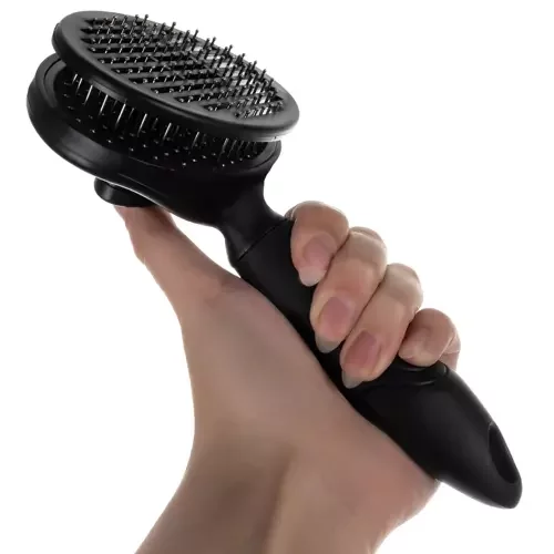 Asigurați-vă că animalul dumneavoastră de companie are o blană netedă și sănătoasă cu această perie de îndepărtare practică. Datorită mecanismului său auto-curățat, firele de păr prinse se îndepărtează ușor prin apăsarea unui buton, fără a fi nevoie să le smulgeți. Mânerul ergonomic anti-derapant asigură o utilizare confortabilă, în timp ce vârfurile fine ale periei masează pielea, sprijină strălucirea blănii și eliberează tensiunea. Peria este universală și potrivită pentru toate lungimile și tipurile de blană, ideală pentru câini, pisici, iepuri și alte animale de companie.
