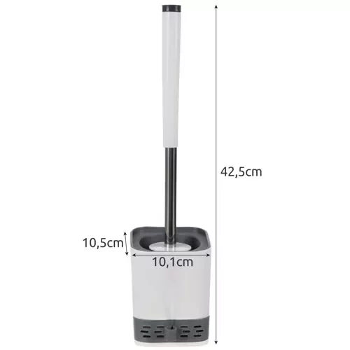 Un perie de toaletă igienică din silicon flexibil asigură curățarea ușoară a WC-ului, fără a reține bacterii sau murdărie. Perii flexibili ajung și în locuri greu accesibile și permit o curățare rapidă și delicată. Designul elegant este completat de o cutie practică cu un sertar detașabil, care protejează podeaua împotriva picăturilor de apă. De asemenea, sunt incluse clești pentru curățarea ușoară a periei, asigurând o igienă și confort pe termen lung.